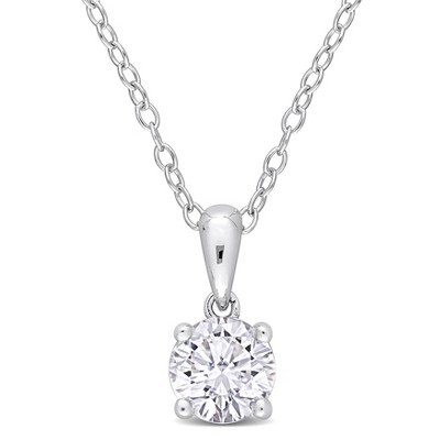 EVERLY JEWELRY | Sterling Silver 1 1/3 CT TGW White Topaz Solitaire Pendant with Chain, 18-inch