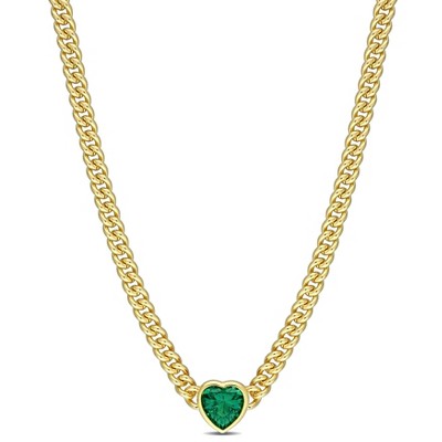 EVERLY JEWELRY | Sterling Silver 1 1/7 CT TGW Princess Cut Created Emerald Solitaire Classic Basket Setting Pendant with Chain, 18-inch