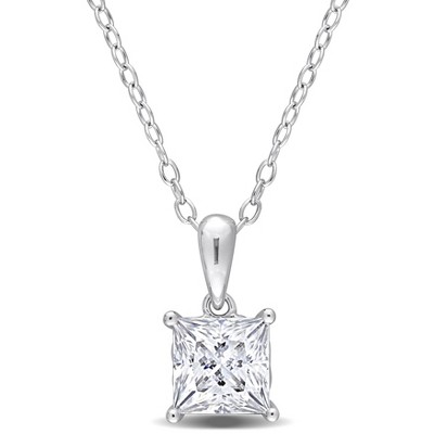 EVERLY JEWELRY | Sterling Silver 1 2/5ct DEW Created Moissanite Graduated 3-Stone Pendant with Chain, 18 inc