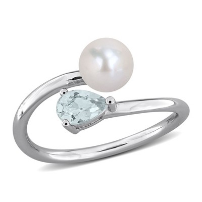 EVERLY JEWELRY | Sterling Silver 1 3/8 CT TGW Aquamarine White Topaz Fashion Ring