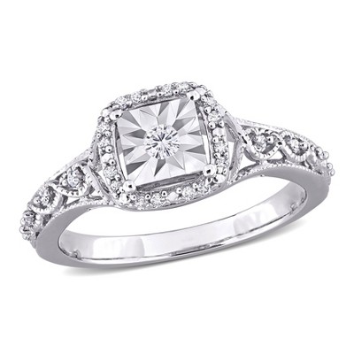 EVERLY JEWELRY | Sterling Silver 1/4 CT TW Diamond Halo Bridal Set