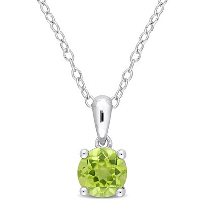 EVERLY JEWELRY | Sterling Silver 1 7/8 CT TGW Oval Peridot Solitaire Classic Basket Setting Pendant with Chain, 18-inch