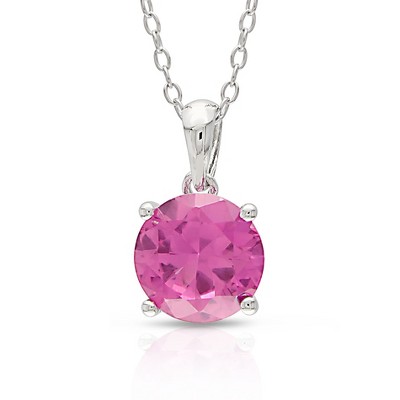 EVERLY JEWELRY | Sterling Silver 1 CT TGW Created Pink Sapphire Solitaire Pendant with Chain, 18-inch