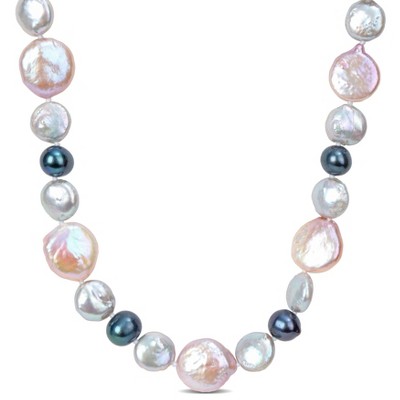 EVERLY JEWELRY | Sterling Silver 13-13.5mm Pink Cultured Freshwater Coin and 7-7.5mm Black Cultured Freshwater Pearl Necklace - 18 inch