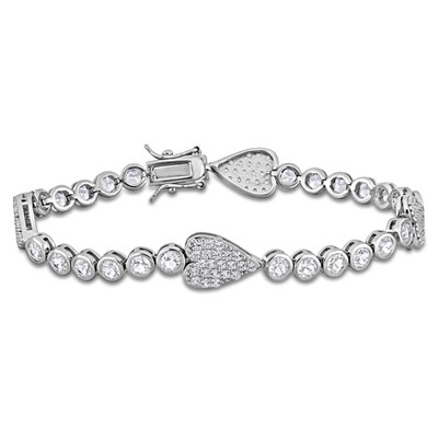 EVERLY JEWELRY | Sterling Silver 14 1/4 CT TGW Created Pink & White Sapphire Bracelet, 7.25-inch