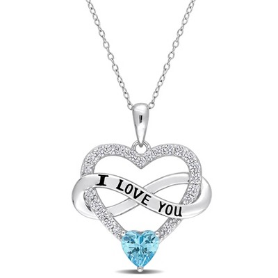 EVERLY JEWELRY | Sterling Silver 2 1/2 CT TGW Light Blue and White Cubic Zirconia Infinity Heart Pendant with Chain, 18 inc