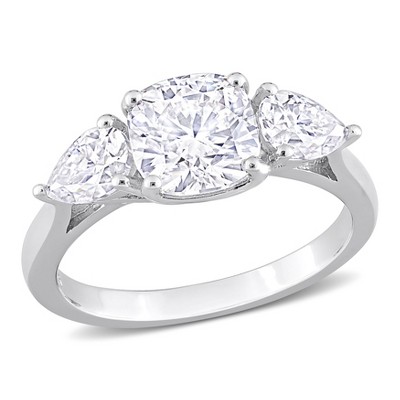 EVERLY JEWELRY | Sterling Silver 2 1/4 CT DEW Taper Created White Moissanite Three Stone Ring