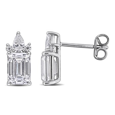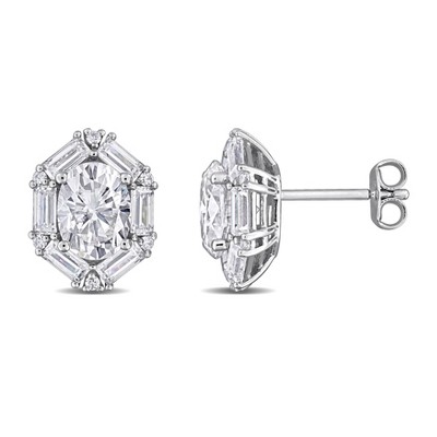 EVERLY JEWELRY | Sterling Silver 2.16 CT DEW Oval-Cut Created White Moissanite Halo Stud Earrings