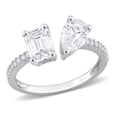 EVERLY JEWELRY | Sterling Silver 2 3/4 CT DEW Octagon and Trilliant Created White Moissanite 3-Stone Ring