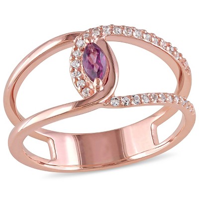 EVERLY JEWELRY | Sterling Silver 2 3/4 CT TGW Rose de France and Created White Sapphire Halo Split Shank Ring