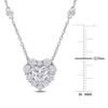 Illuminate your neckline with this stunning halo heart station necklace, featuring 2 CT DEW created moissanite stones that radiate brilliance. Crafted in sterling silver, this elegant piece is suspended from a durable cable chain and secured with a spring ring clasp. With a length of 18 inches, it�s perfect for layering or wearing alone for a touch of sophistication.