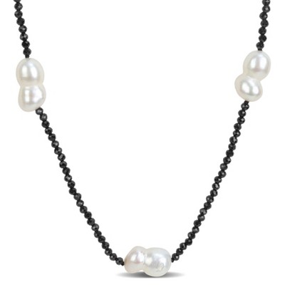 EVERLY JEWELRY | Sterling Silver 3 3/4 CT TGW Black Spinel Cubic Zirconia & White Topaz Zebra Necklace with Chain, 18"+2"ext