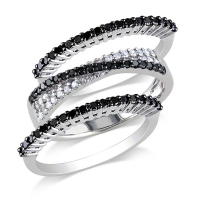 EVERLY JEWELRY | Sterling Silver 5/8 CT TDW Princess and Round-Cut Black and White Diamond Bridal Ring Set