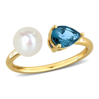 EVERLY JEWELRY | Sterling Silver 7-7.5 mm Black Cultured Freshwater Pearl and White Topaz Halo Ring