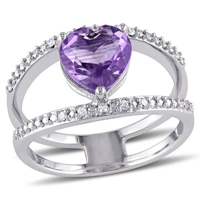 EVERLY JEWELRY | Sterling Silver 7/8 CT TGW African Amethyst and White Topaz Flower Cocktail Ring
