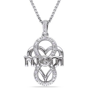 Honor the endless love and devotion of a mother with this exquisite infinity heart pendant, a timeless expression of affection, connection, and elegance. Crafted in luminous sterling silver, the pendant features a graceful infinity heart design, engraved with the word “Mom” at its center, celebrating the unbreakable bond between mother and child. Sparkling diamonds accent the curves of the heart, catching the light with a gentle brilliance that enhances the pendant’s delicate and refined silhouette. Suspended from an 18-inch box chain with a secure lobster clasp, it rests beautifully along the neckline, offering both comfort and sophistication for everyday wear or special occasions. Perfect as a heartfelt gift for birthdays, Mother’s Day, or any moment meant to honor a special mom, this pendant conveys love, gratitude, and enduring devotion in a wearable form. Its elegant design balances sentiment with style, creating a keepsake that will be treasured for years. Luminous, meaningful, and timeless, this infinity heart pendant serves as a beautiful reminder of a mother’s enduring love and the everlasting connection that makes it truly unforgettable.