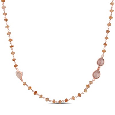 EVERLY JEWELRY | Sterling Silver Multi-Color Tourmaline Aquamarine Chips and Lolite Beaded Station Necklace - 36 in