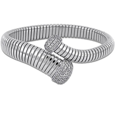 EVERLY JEWELRY |Two Tone Silver 3/8 CT TGW Cubic Zirconia 3.3mm flat Bangle, 7.5 inch