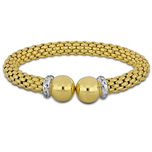 EVERLY JEWELRY | Two Tone Silver round popcorn stretch Bangle