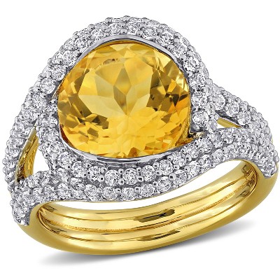 EVERLY JEWELRY |Yellow Plated Sterling Silver 0.04 CT TW Diamond And 7 3/5 CT TGW Citrine White Topaz Cocktail Ring