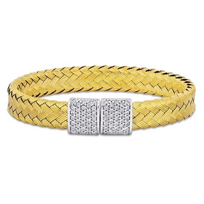 EVERLY JEWELRY | Yellow Plated Sterling Silver 0.88 CT TGW Heart Cubic Zirconia Bracelet, 6.5 inc+1 inc ext