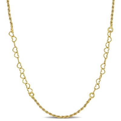 Express your love with Everly Jewelry's yellow plated sterling silver 3.3mm heart link necklace, 16"+2" with a lobster clasp.