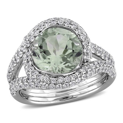 EVERLY JEWELRY |Yellow Plated Sterling Silver 8 CT TGW Green Quartz Peridot Solitaire Ring Black Rhodium Plated