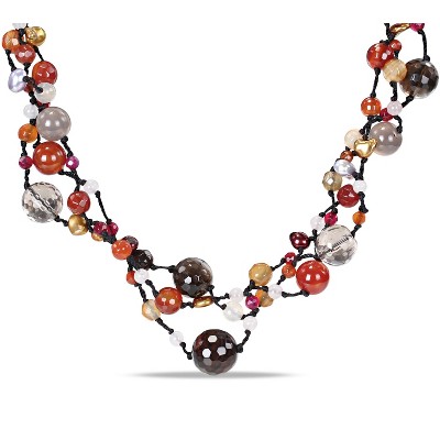 The warm golden tones of the plating beautifully complement the deep red of the agate, highlighting the natural variations and organic charm of each stone. The link-bead design ensures graceful movement along the neckline, offering a versatile piece that works equally well as a standalone statement or layered with other necklaces for added dimension.