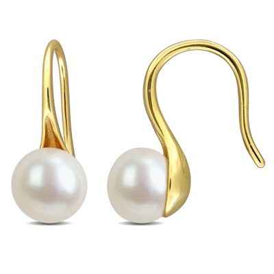 EVERLY JEWELRY | Yellow Silver Cultured Freshwater Pearl Shepard Hook Drop Earrings with Curb Chain