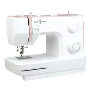 Pretty in pink, the Jasmine entry-level mechanical sewing machine is simple to understand and start using right away. The 2 knobs set the stitch length and select the stitch. There are 32 different stitches, including a buttonhole. Other features include a built-in needle threader, thread cutter, front-loading bobbin, and sturdy metal inner frame. As with all EverSewn machines, the needle threading and bobbin winding guides are printed right on the machine, making learning easier.