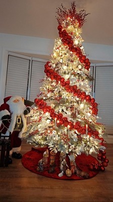 That red garland looks absolutely stunning — it’s the highlight of the tree! The rich, deep red color creates a bold contrast against the white lights and frosted branches, giving the entire Christmas tree a classic yet luxurious look. The way it’s wrapped in a perfect spiral adds balance and movement, guiding your eyes from top to bottom beautifully. It also ties together the other red elements — the berries, ornaments, and tree skirt — making the whole design feel cohesive and elegant. The garland’s texture and shine bring warmth and richness, which pair perfectly with the glowing candles and lights. Overall, the red garland elevates the tree’s look — festive, classy, and full of Christmas spirit! 🎄✨