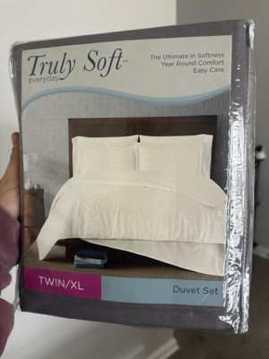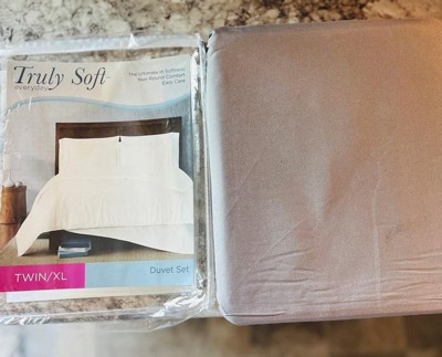 [This review was collected as part of a promotion.] The name of this duvet set says it all! It's called "Truly soft" and it IS truly soft! It feels super luxurious and comes with a twin XL duvet along with a standard sham. I got them for my son's bed and he absolutely loved it! The color is a perfect neutral gray that goes with everything and it is buttery smooth! It says that it is double brushed for a super soft touch. The down alternative filled comforter is wrinkle resistant for faster drying time. Right out of the package it hardly had any wrinkles and didn't need to be ironed at all! My son and I are super happy with this product!