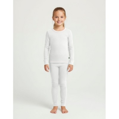 EVERYDAY KIDS Girls Thermal Underwear Set – Long Johns Base Layer for Cold Weather – Microfleece & Moisture-Wicking, White