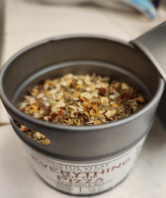 - Everything But Pizza Seasoning: Garlic, Salt, Basil, Oregano, Red Bell Peppers, Green Bell Peppers, Sesame, Black Pepper, Fennel, Rosemary.