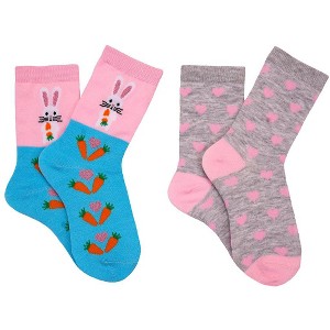 Everything Legwear Girls Easter Bunny & Hearts 2 Pair Crew Socks