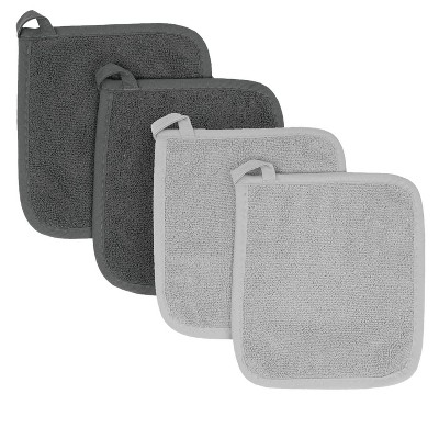 Evideco French Home Goods Chef's French Culinary Cotton Pot Holder - Heat Resistant 8x8 Inch - Wine & Delicacies Design Paris Gray