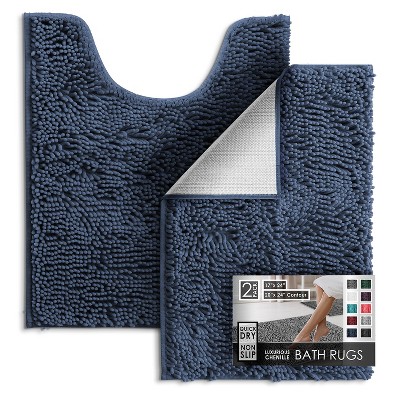Evideco French Home Goods Navy Blue Memory Foam Contour Bath Rug with 3D Pebble Design, 20"x20" - Ultra-Plush Comfort for Your Feet