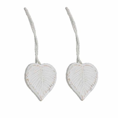 Evideco French Home Goods Set of 2 White Magnetic Curtain Tiebacks - Stylish Leaf Design in Resin - Convenient Accessories for Draperies