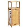 - NICE DESIGN: This brown laundry sorter cabinet features a bamboo-made front door. It adds a unique style to your home. Suit any room, bedroom, laundry, toilets and bathroom
