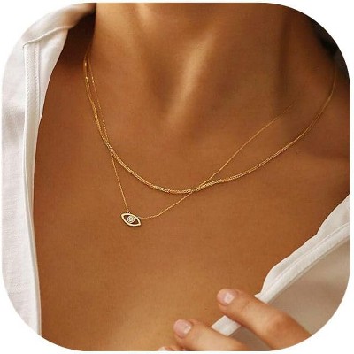 【SIZE】: 18"+2" Gold Evil Eye Necklace, adjustable to a comfortable length,Pendant Evil Eye (16.7*16.5MM) Suitable size for most women.