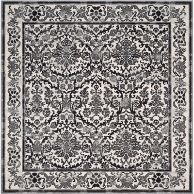Elevate your living space with this luxurious 6'-7" X 6'-7" square area rug, beautifully crafted in Turkey. Exuding elegance, the rug boasts an intricate pattern that melds classic ivory and grey hues to bring a sense of timeless sophistication to any room. Constructed with precision using a power-loomed technique, it has a durable 100% polypropylene pile with a cozy 3/8" height, ensuring comfort underfoot. Although not washable and lacking slip resistance, its stunning design and robust construction make it a worthy investment for those seeking to infuse their home with a touch of artisanal charm.