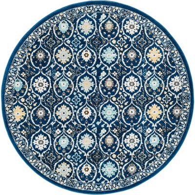 Not only is this rug visually appealing, but it's also backed by the OEKO-TEX certification, ensuring that it is free from harmful substances and safe for your family and the environment. Embrace the allure of this Royal/Ivory Round Area Rug and add a touch of sophistication to your floors ? a statement of timeless elegance and artisanal quality.