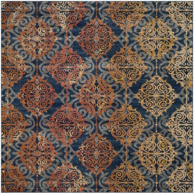 The rug's square shape perfectly encapsulates the intricate and classical pattern depicted in the image, where flourishing botanical motifs and elegant flourishes come alive against the calming ivory backdrop, with stunning accents in varying shades of blue. The balanced symmetry and luxurious appeal breathe life into any room, suggesting a narrative of heritage and artistry.