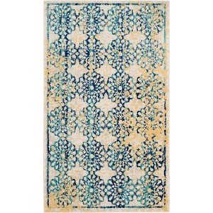 Introducing our exquisite 3' x 5' Small Rectangle area rug, a stunning blend of IVORY and BLUE hues in a mesmerizing pattern that is sure to elevate the elegance of any room in your home. Carefully crafted in Turkey with the latest Power Loomed technology, this rug boasts a fine construction of 100% Polypropylene, ensuring durability without compromising on softness underfoot.