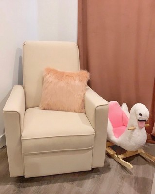 - Electronic Power Glider Recliner - A power glider recliner with an electronic push-button panel on the armrest lets you to recline. The smooth, quiet recline is ideal for nursing, feeding, soothing, or relaxing without disturbing your little one.