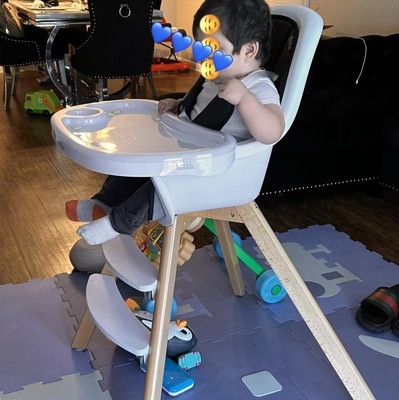 Our kiddo has never stopped loving this high chair! We’ve been using it for a year and eight months. Only just now considering the tradition to a chair.
