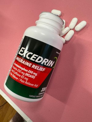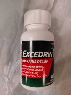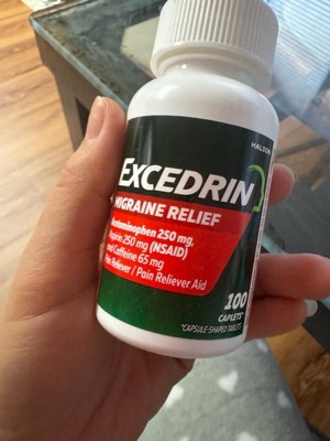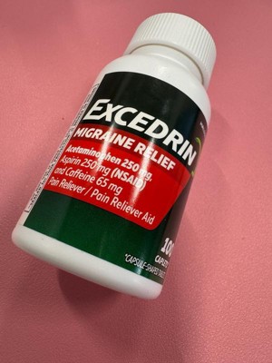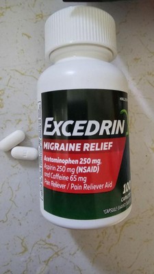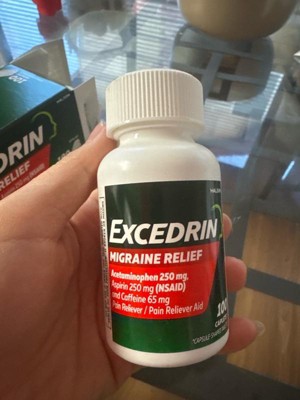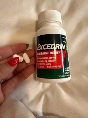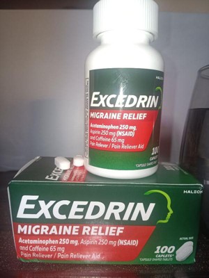 [This review was collected as part of a promotion.] I received this product for free from Influenster and Excedrin in exchange for my honest review. The bottle has 100 caplets but small enough bottle to carry in your purse or even at work. It contains acetaminophen, aspirin, and caffeine so if you're sensitive to caffeine, probably not the best medication for you. It's super effective for mild to moderate migraine attacks, especially early onset or first migraine symptoms. It usually starts to work about 30 minutes to an hour after taking the medication to feel relief.