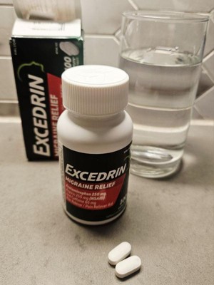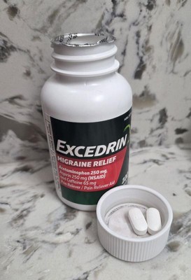 - One bottle of 24 Excedrin Migraine Caplets for Migraine Headache Relief