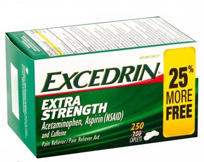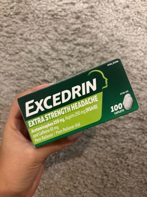 Excedrin Extra Strength Caplets provide clinically proven headache relief fast. Excedrin works in 3 ways to relieve headaches: it blocks pain signals, elevates your pain threshold and uses caffeine to enhance the pain relief effect. Available in convenient caplet form, this nonprescription pain relief medicine works as hard as you do, combining aspirin and acetaminophen with caffeine. These active ingredients create a powerful formula with two pain relievers and a booster to offer temporary relief of pain from headaches, colds, premenstrual and menstrual cramps, arthritis, tooth pain and muscle pain. For some, headache pain relief with this Excedrin extra strength pain reliever can start in 15 minutes. Get headache relief fast with Excedrin, the headache expert.