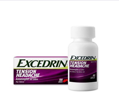 Excedrin Tension Headache Relief Caplets are a fast-acting, aspirin-free alternative that provides headache pain relief, neck pain relief and shoulder pain relief quickly. Combining acetaminophen with caffeine, this tension headache medicine delivers an effective formula with both a pain reliever and an amplifier to treat the headaches associated with neck and shoulder pain caused by tension and stress. These Excedrin tension headache caplets relieve minor pain caused by tension headaches and muscular aches. Get fast relief from your headache, neck and shoulder pain with this tension headache pain medicine.
